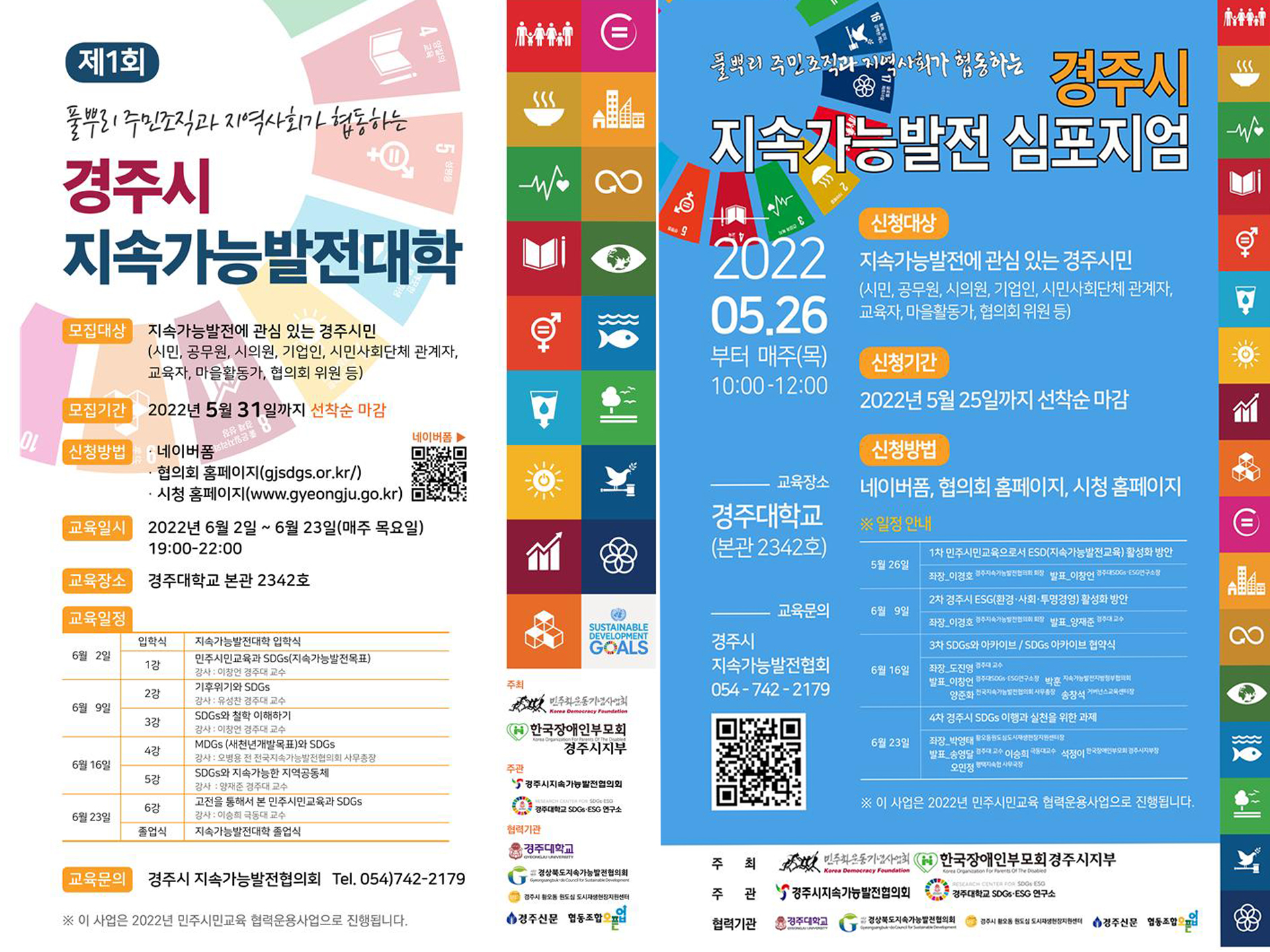 경주시 지속가능발전대학과 심포지엄은 그동안 지역사회 지속가능발전을 주도해 온 경주시지속가능발전협의회를 비롯해 한국 장애인 부모회 경주시지부, 황오동 원도심 도시재생현장지원센터, 협동조합 '오픈업' 등 지역사회단체와 협업을 통해 수행된다.