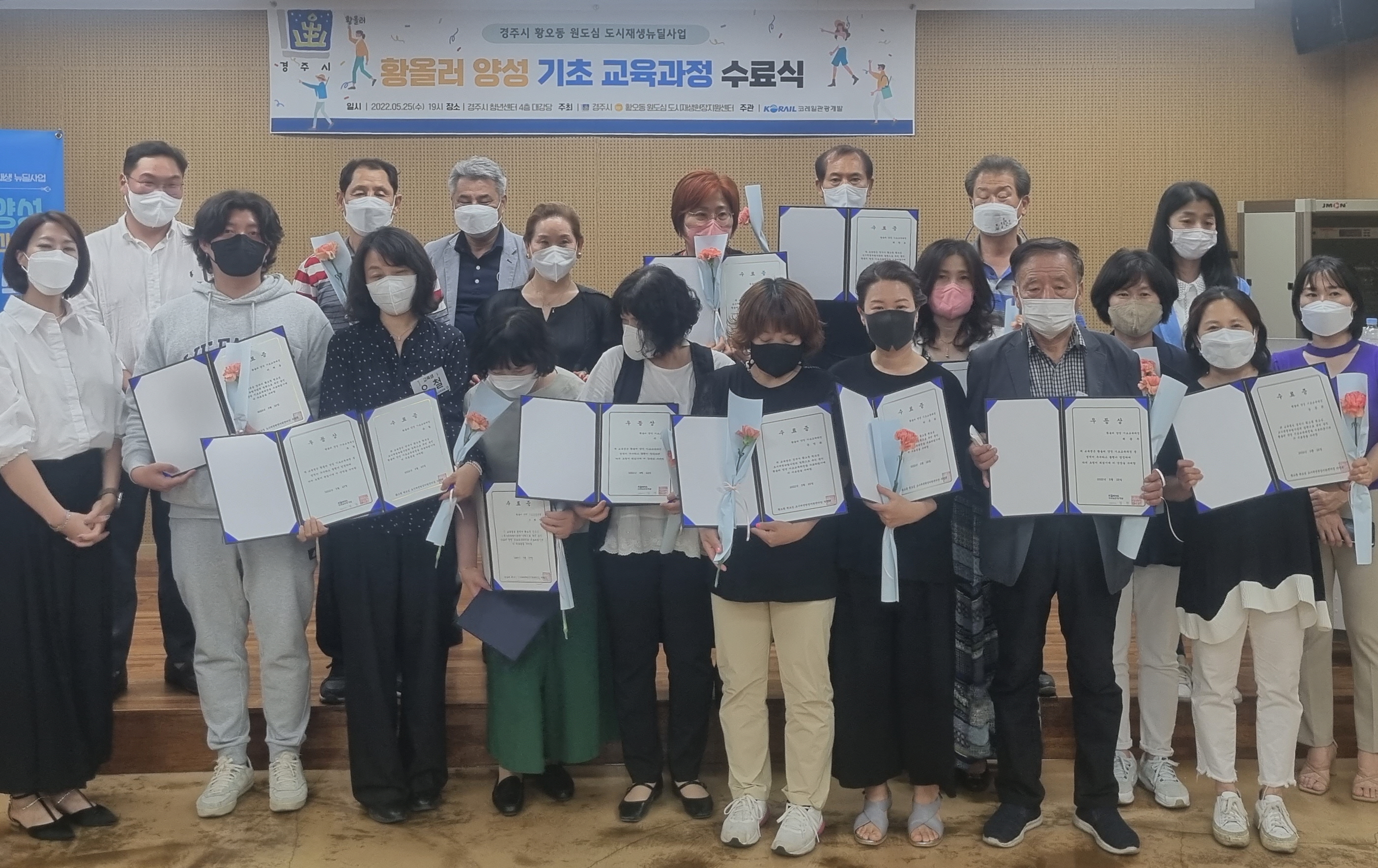 【경주=미디어인경북】 김동철 기자 = 경주시 황오동 원도심 도시재생현장지원센터(센터장 박영태)가 황오동 상권 활성화를 위한 주민역량강화사업으로 진행한 ‘황올러 기초 양성과정’ 수료식이 지난 25일 경주시 청년센터 4층 대강당에서 열렸다.
