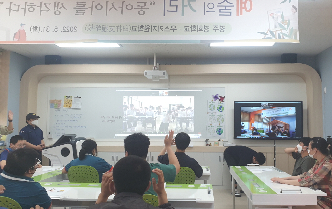 【경주=미디어인경북】 김동철 기자 = 경주시는 31일 경희학교 고등부 학생과 일본 오이타현 우스키시(大分県臼杵市) 우스키지원학교(臼杵支援学校) 3학년 학생 간 온라인 교류수업을 진행했다.