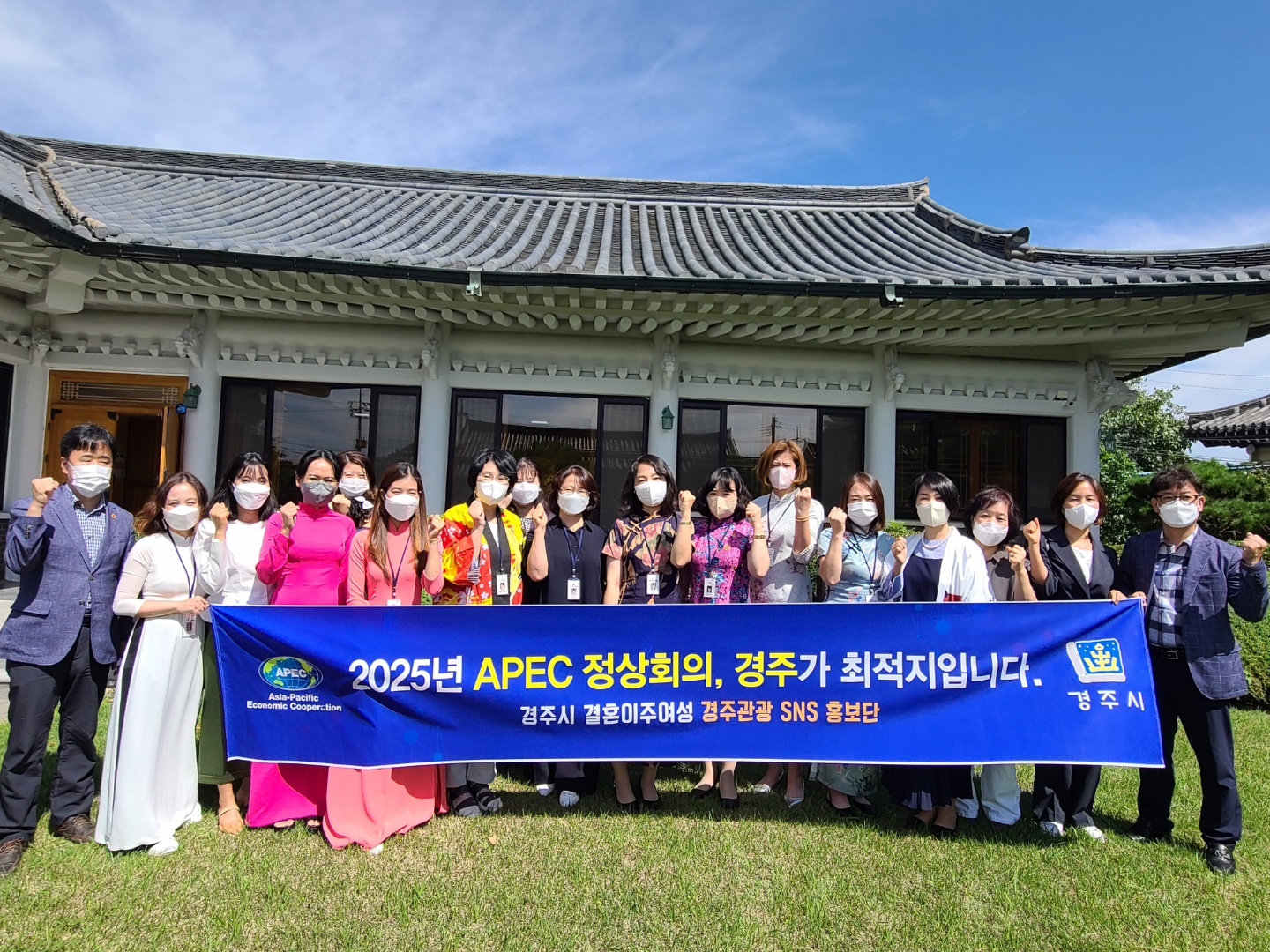 | ↑↑ 8일 결혼이주여성들이 경주관광 SNS홍보단 3기 발대식에 참가해 위촉장 수여 후 경주 APEC 정상회의 유치를 홍보하고 있다 / 경주시(사진제공) |