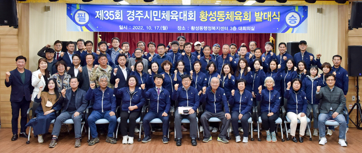 [경주=미디어인경북] 경주시 황성동체육회(회장 임동백)는 17일 황성동행정복지센터 대회의실에서 선수, 임원 등 70여 명이 참석한 가운데 제35회 경주시민체육대회 선전을 다짐하기 위해 ‘황성동 선수단 발대식’을 개최했다.