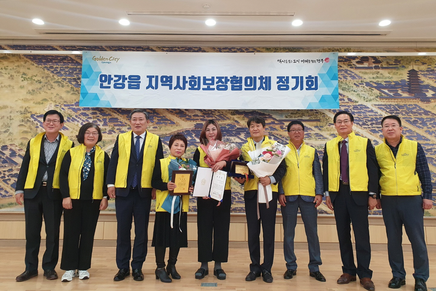 | 18일 경주시 안강읍지역사회보장협의체 정기회에서 지역복지발전 유공자 표창을 진행한 후 기념촬영을 하고 있는 모습= 경주시(사진제공) |