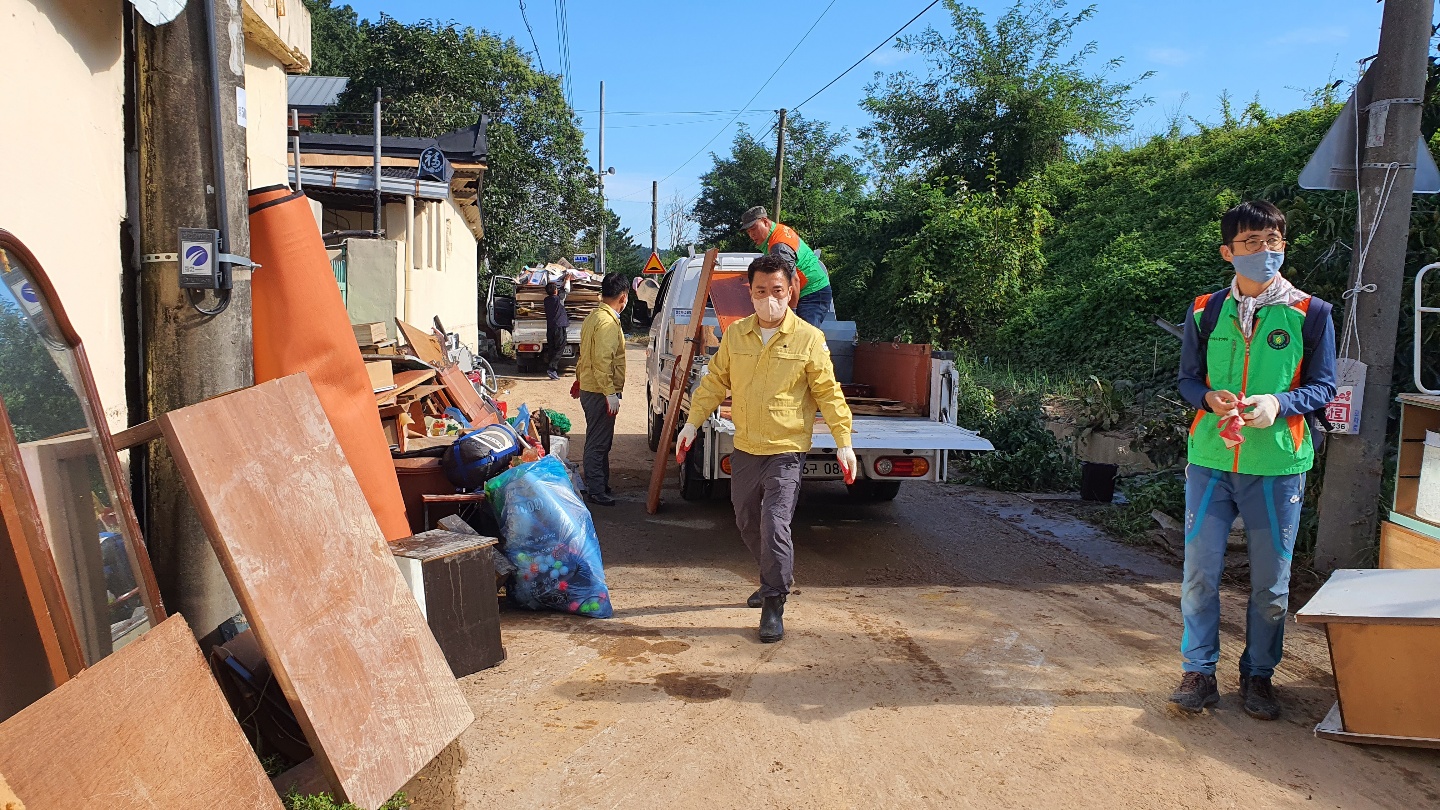 | ↑↑ 석장동 부엉마을 태풍 침수가옥 자원봉사=경주시(사진제공) |