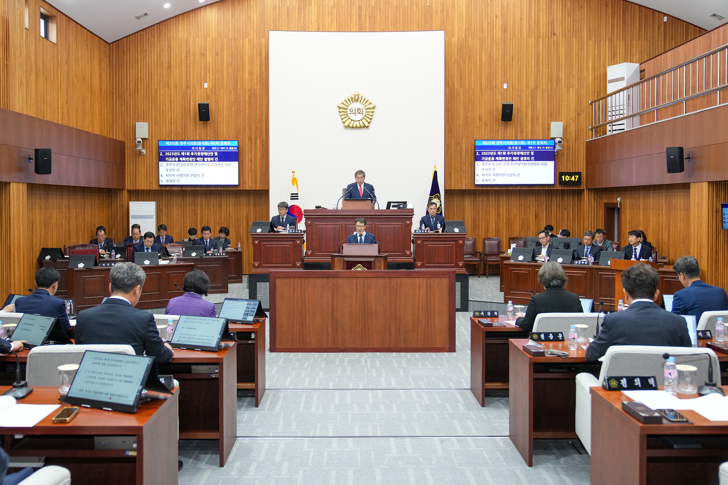 제1차 본회의에서는 제275회 경주시의회 임시회 회기결정의 건, 2023년도 제1회 추가경정예산안 및 기금운용계획변경안 제안 설명의 건 등의 순으로 진행했다.