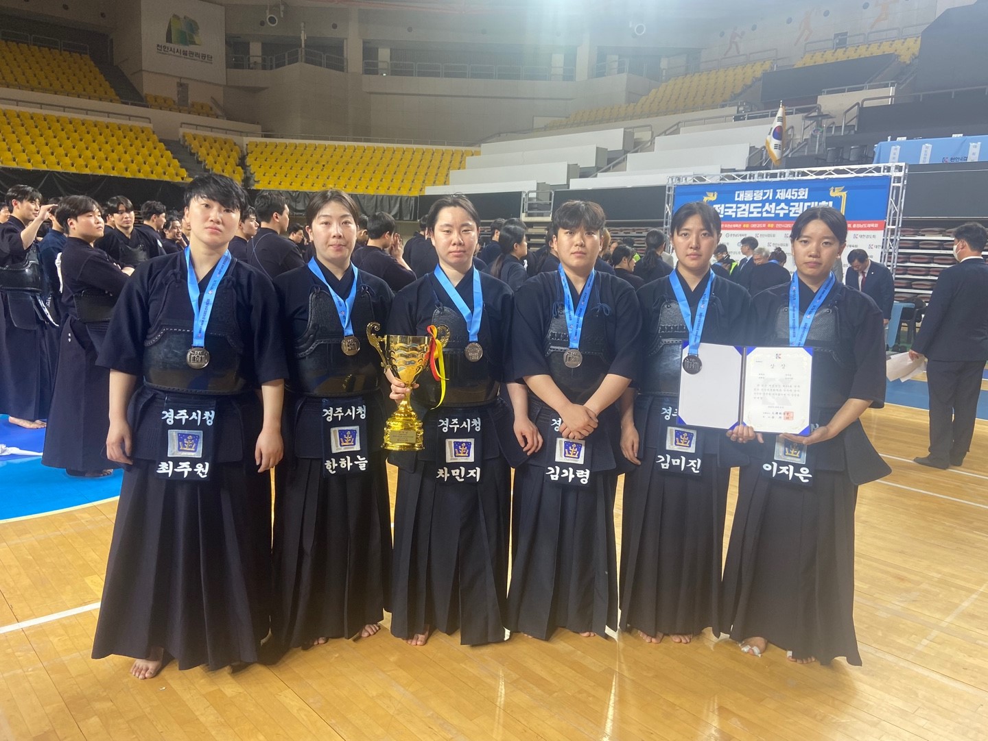 【경주=미디어인경북】 경주시청 직장운동경기부 여자검도팀이 대통령기 제45회 전국검도선수권대회에서 단체전 준우승과 여자부 개인전(차민지) 3위를 각각 차지했다.