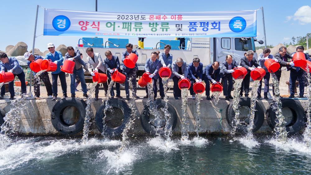 | ↑↑ 온배수 이용 양식 어·패류 방류 / 사진제공=월성원자력본부 |