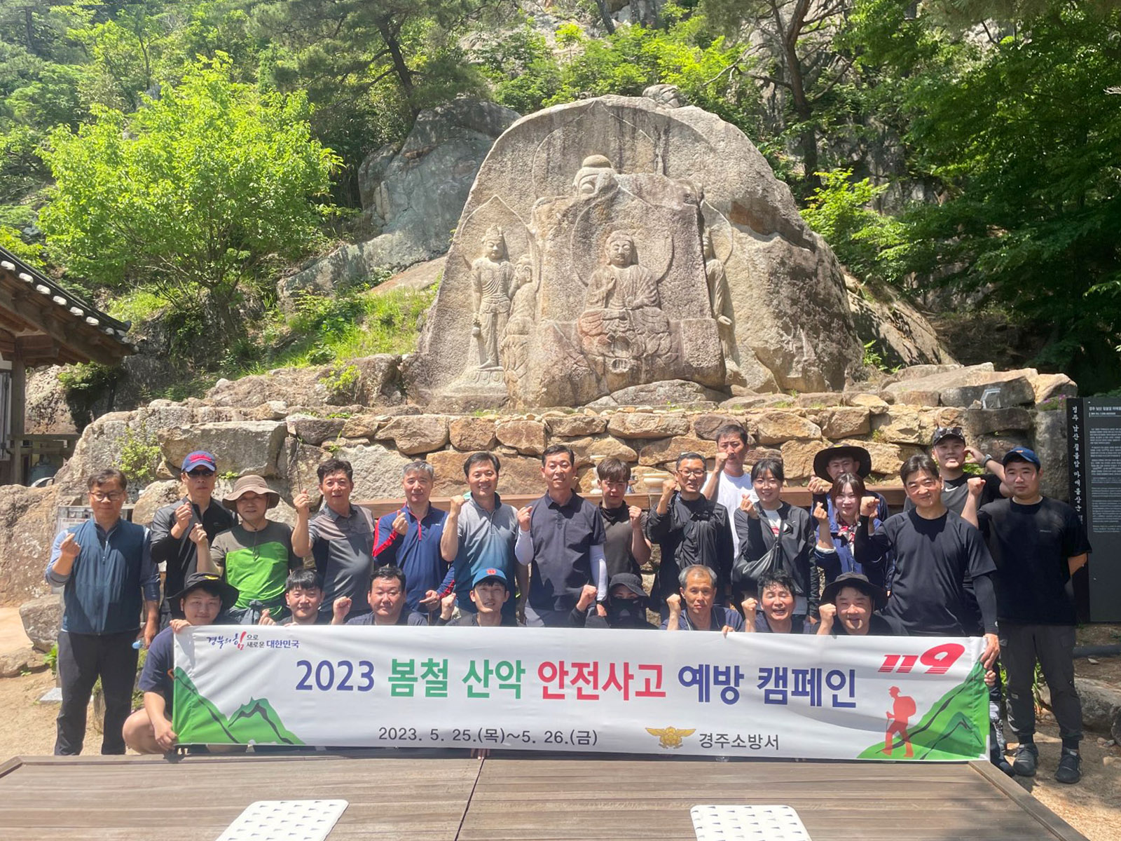 【경주=미디어인경북】 경주소방서(서장 한창완)는 지난 25일부터 26일까지 2일간 경주시 남산 칠불암에서 ‘봄철 산악사고 예방캠페인 및 직원 소통데이 행사’를 가졌다고 밝혔다.