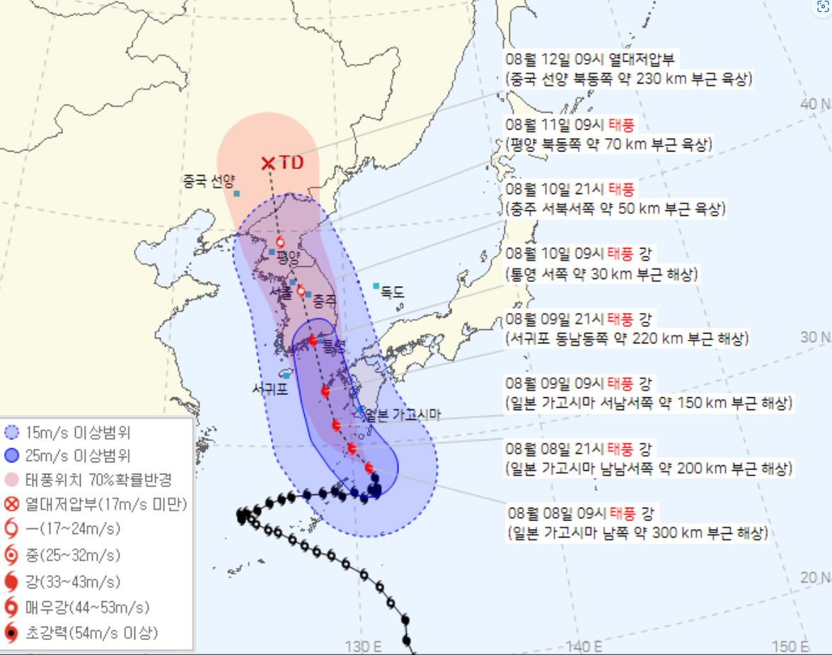 | ↑↑ 기상청 제공 태풍 상황도(8일 10시 기준) |
