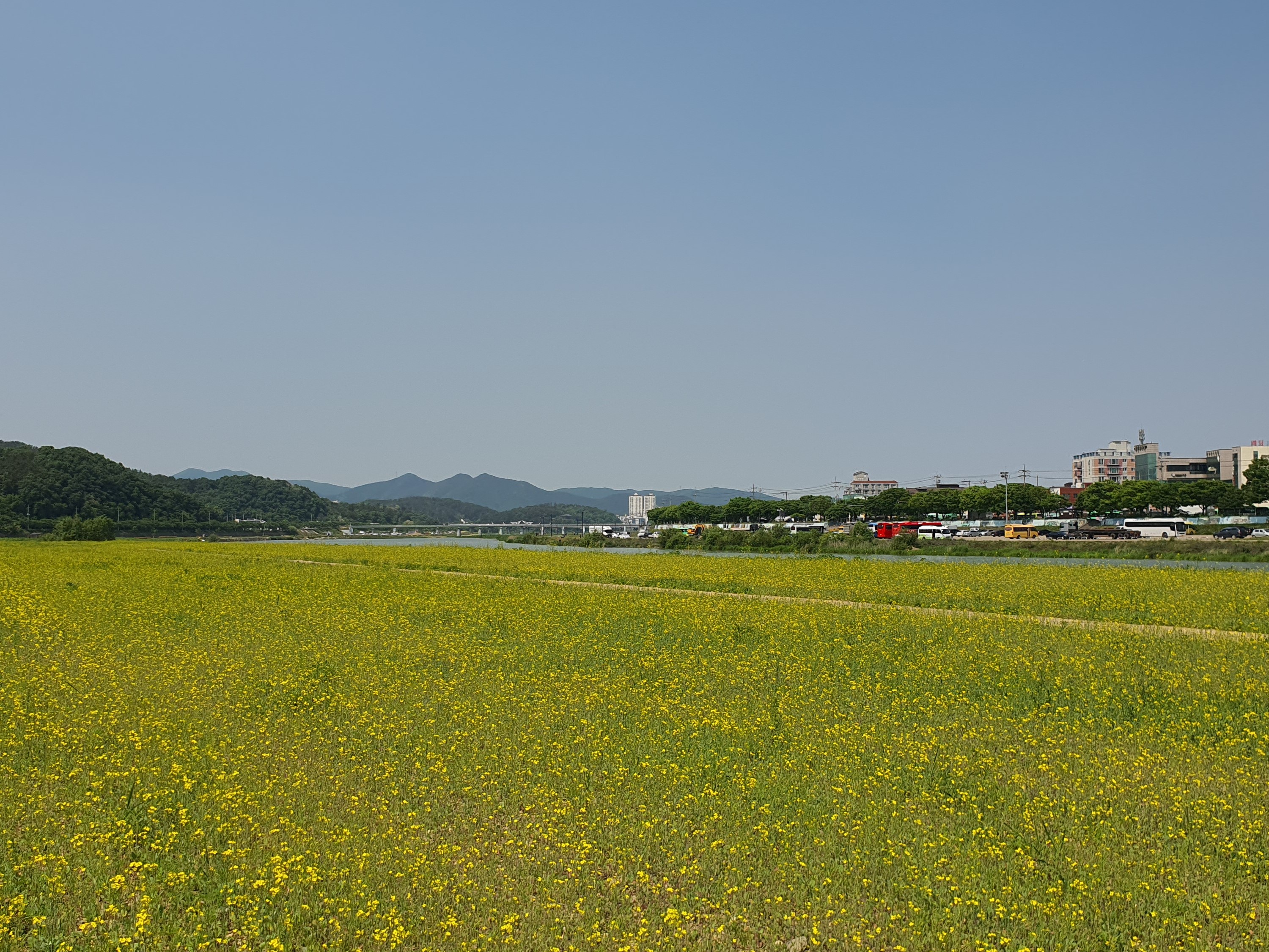 봄 파종으로 초록 잎과 꽃이 함께 피고 있는 유채꽃은 5월 중순에서 5월 말 사이 만개해 아름다운 하천경관을 연출해 줄 것으로 기대하고 있다.