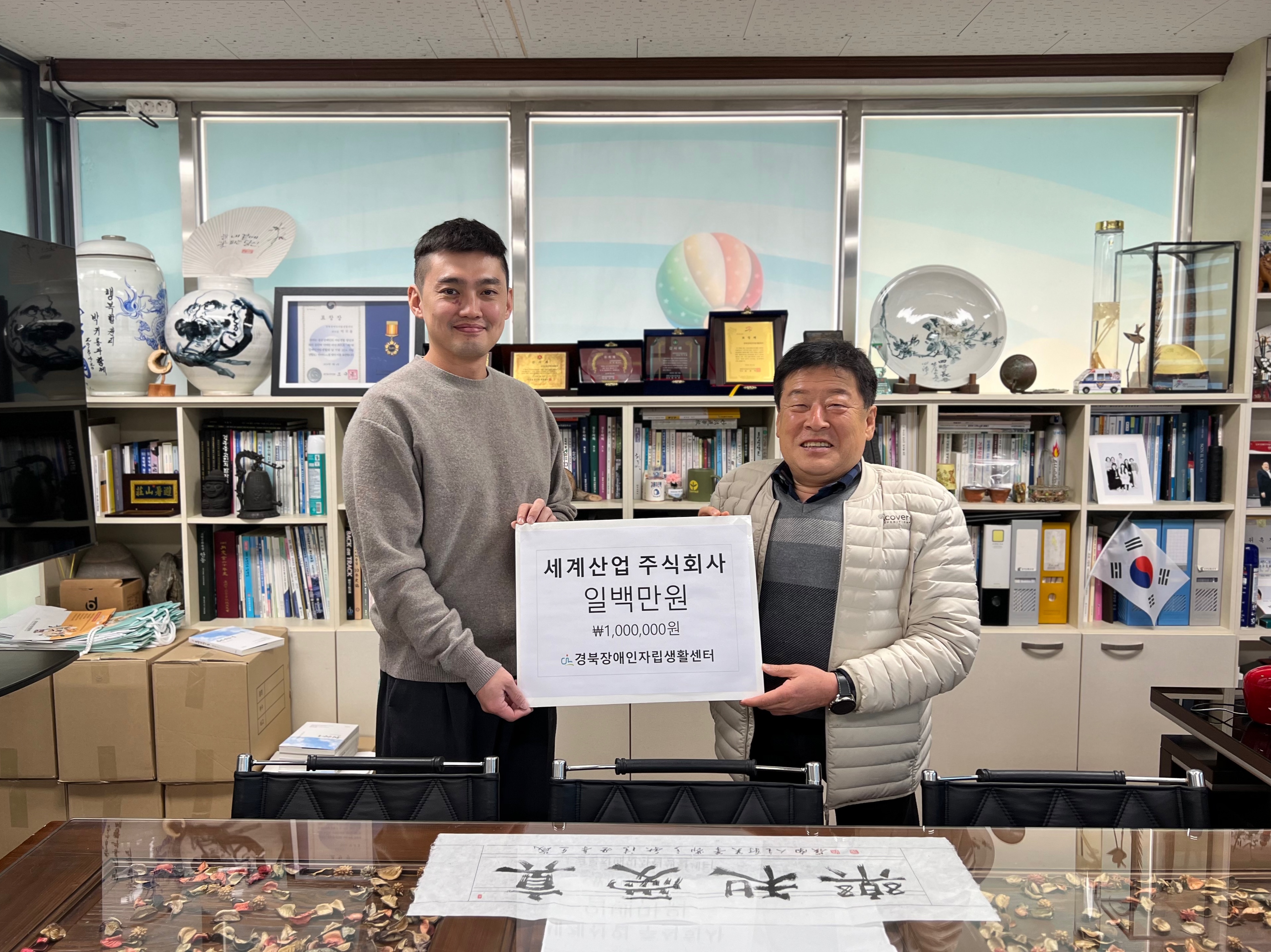 | ↑↑ 세계산업, 경북장애인자립생활센터에 중증장애인 자립생활지원 성금 기탁 |