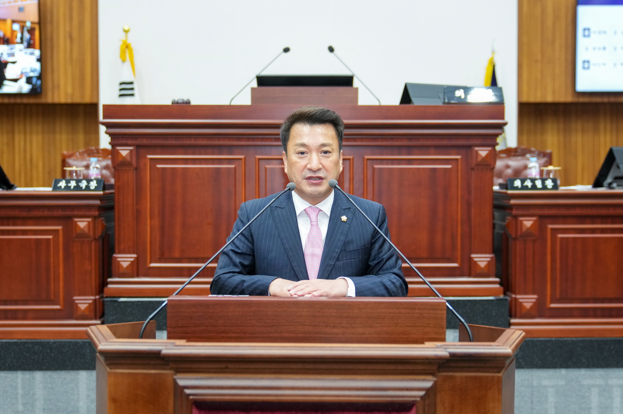 | ↑↑ 최재필 의원이 제287회 제2차 정례회 제1차 본회의 5분 자유발언을 하고 있다 / 사진제공=경주시의회 |