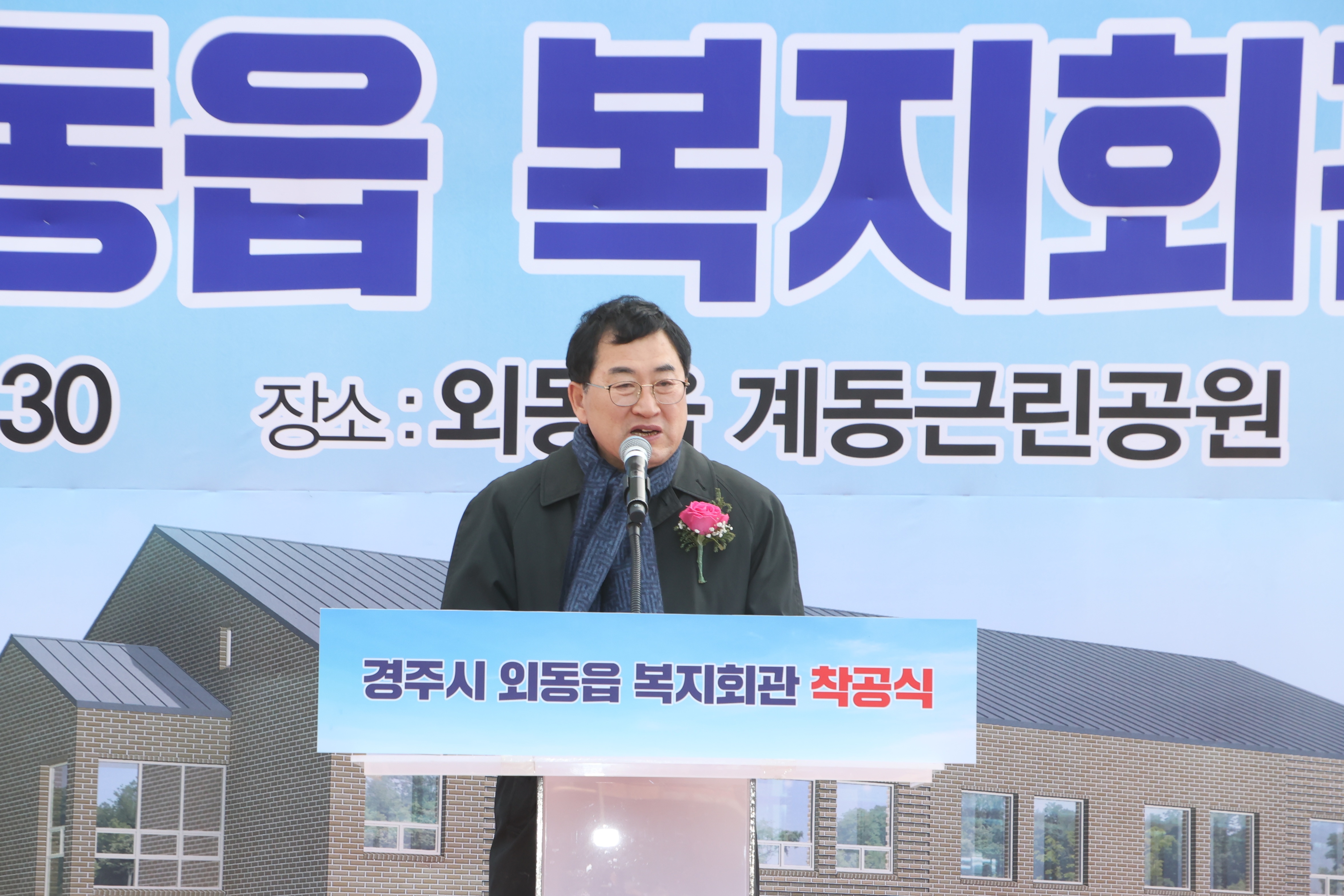 | ↑↑ 주낙영 시장이 외동읍 복지회관 건립공사 착공식에 참석해 인사말씀을 하고 있다 / 사진제공=경주시 |