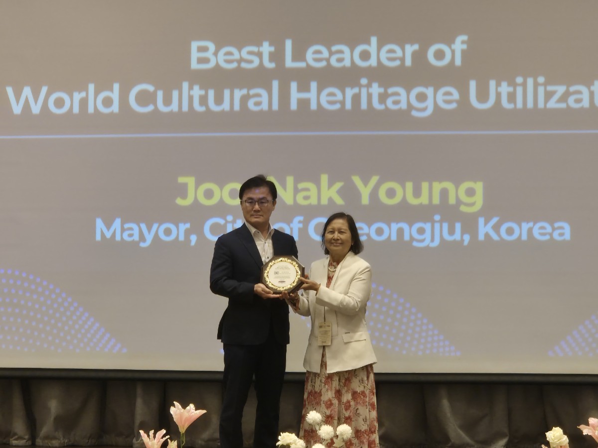 【경주=미디어인경북】 주낙영 경주시장이 세계축제협회 아시아지부(IFEA ASIA)·태국산업연맹(FTI) 주최 ‘2025 세계문화유산도시 야간형 축제 컨퍼런스’에서 세계유산 활용해 관광콘텐츠를 발전시킨 공로를 인정받아 ‘세계유산활용 베스트 리더상’을 수상했다.