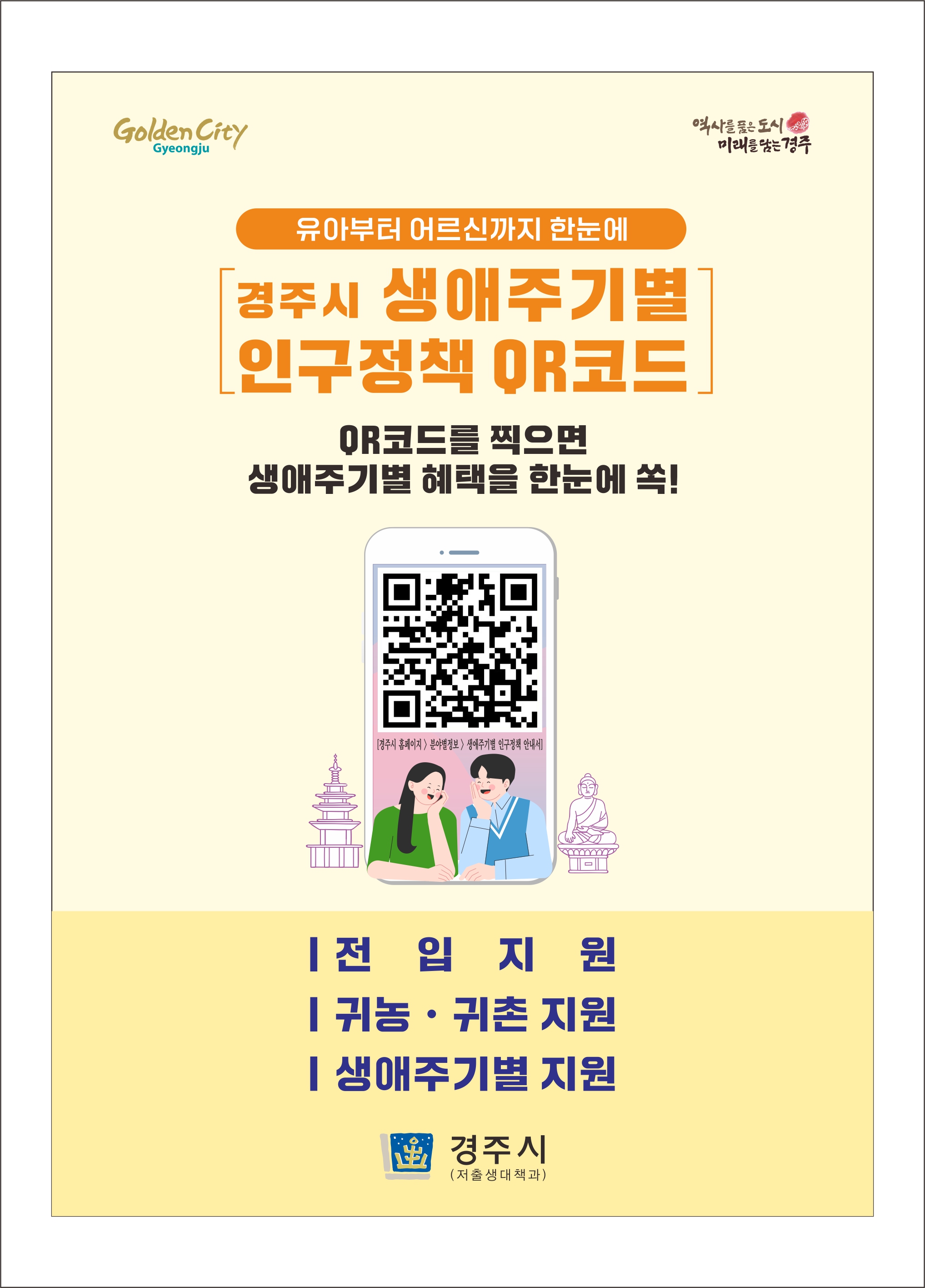 더불어 경주시청 홈페이지(분야별정보)에 전자책으로 게시하고, QR코드를 제공해 스마트폰으로 누구나 쉽게 인구정책 정보를 열람할 수 있도록 조치할 계획이다.