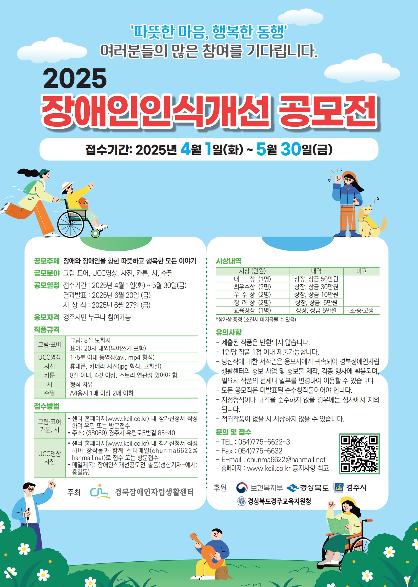【경주=미디어인경북】 경북장애인자립생활센터(센터장 박귀룡)는 2025 장애인인식개선공모전을 개최한다.
