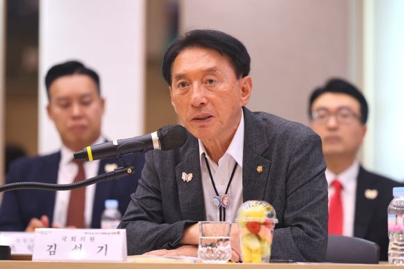 | ↑↑ 14일 경주시청 알천홀에서 열린 ‘국민의힘-경주시 정책간담회’에서 김석기 국회의원이 발언하고있다 / 사진제공=경주시 |
