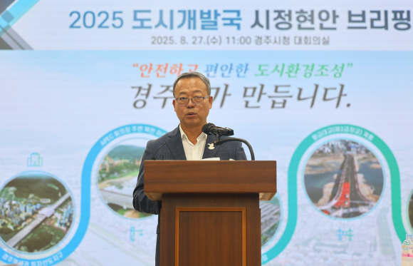 【경주=미디어인경북】 경주시는 27일 시청 대회의실에서 도시개발국과 맑은물사업본부 합동 언론브리핑을 열고, APEC 정상회의 대비 기반시설 정비와 시민 생활과 직결된 주요성과 및 향후 계획을 발표했다.