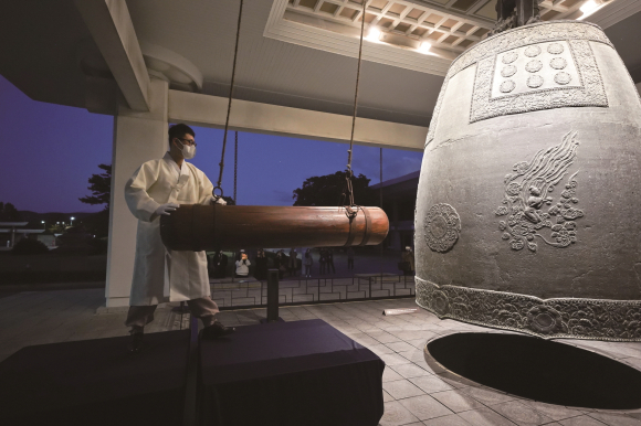 | ↑↑ 고유주파수 조사를 위한 타종(2021) / 사진제공=국립경주박물관 |