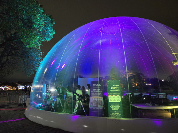 | ↑↑ 첨성대를 배경으로 별자리를 관측하는 ‘선덕여왕의 별애별일’ / 사진제공=경주시 |