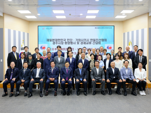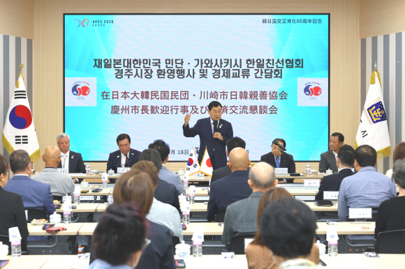 【경주=미디어인경북】 경주시는 18일 청사 대회의실에서 일본 민단과 가와사키시 한일친선협회 방문단(회장 다나카 카즈노리) 42명을 맞아 환영행사를 열었다.