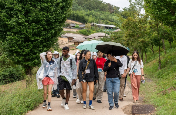 | ↑↑ 2025 세계유산축전 경주역사유적지구 팸투어에 참여한 외국인 유학생들이 해설사와 함께 양동마을을 방문하고 있다 / 사진제공=경주시 |
