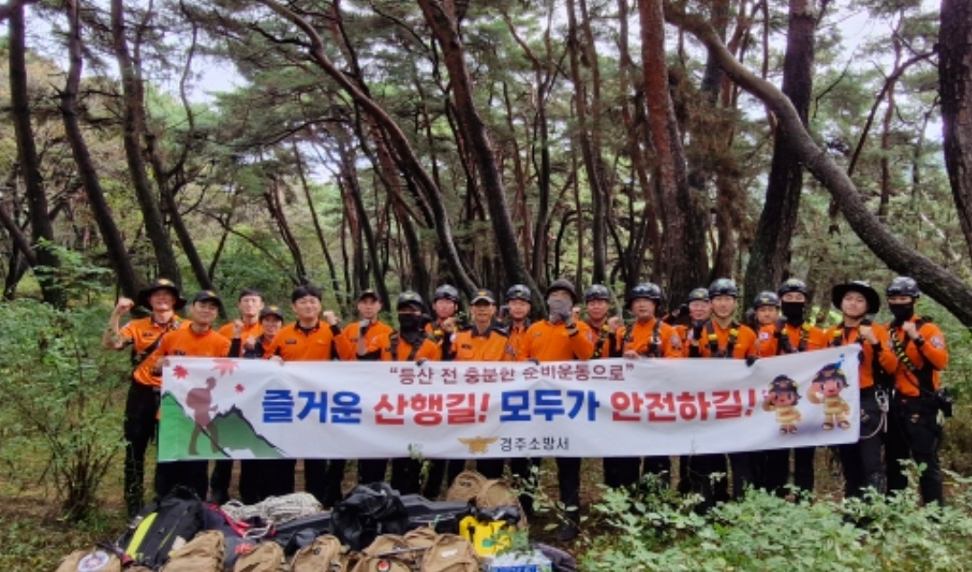 【경주=미디어인경북】 경주소방서는 10월 15일(수) 경주국립공원 남산지구 삼릉 일원에서 산악사고 대비 인명구조 기술 숙달 능력 향상을 위한 ‘2025년 가을철 산악구조훈련 및 산악사고 예방 캠페인’을 실시했다.