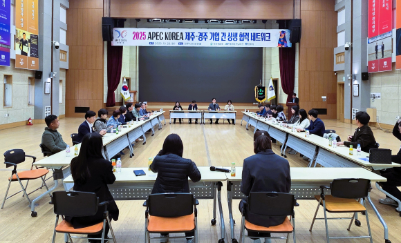 | ↑↑ ‘2025 APEC KOREA’ 개최 기간을 맞아 경주시, (사)중소기업융합대구경북연합회 경주융합회(이하 경주융합회), 제주테크노파크 간의 지역 기업 상생협력 간담회가 성황리에 열렸다. |