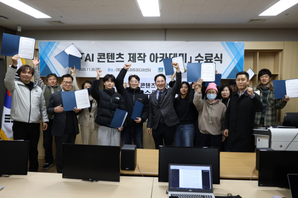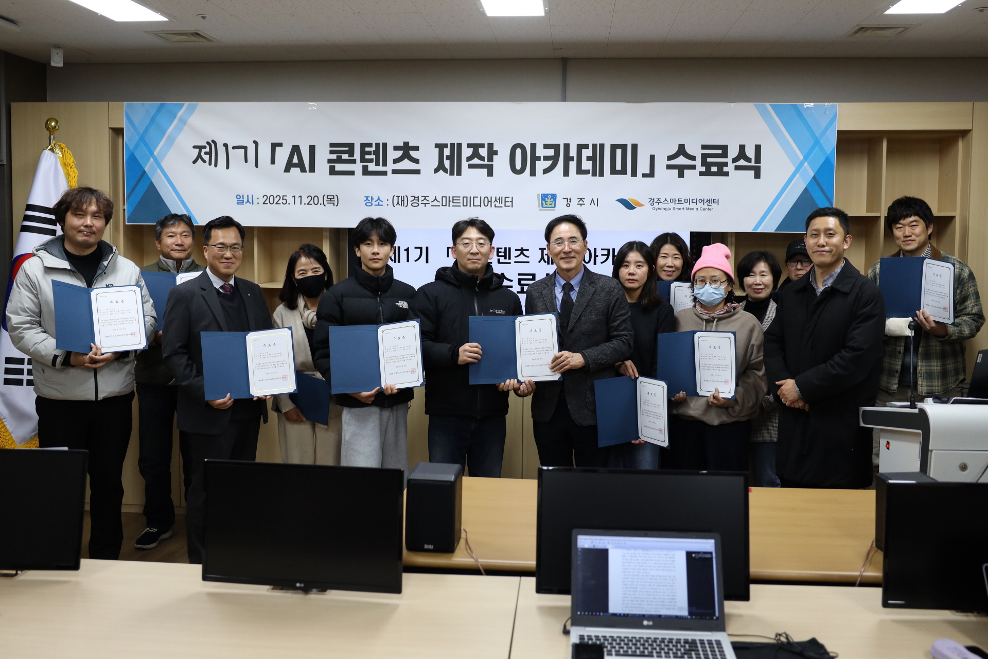 【경주=미디어인경북】 (재)경주스마트미디어센터(센터장 김장주)가 제1기 「AI 콘텐츠 제작 아카데미」 수료식을 성황리에 진행했다고 21일 밝혔다.