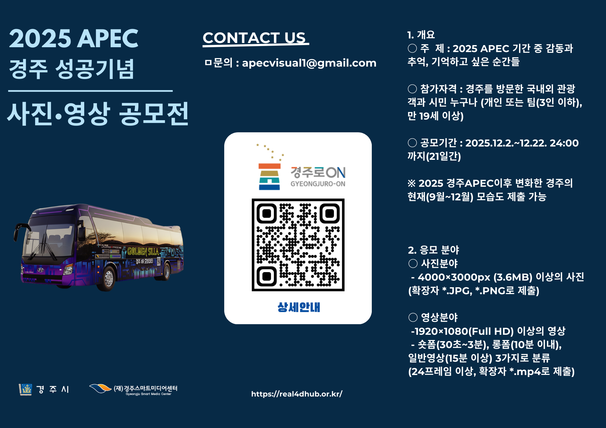 이번 공모전은 2025년 APEC 정상회의를 계기로 변화하고 있는 경주의 모습을 시민의 시선으로 기록하고, 이를 디지털 콘텐츠 자산으로 축적하기 위해 마련된 사업으로, 재공고 이후 참여 기회 확대를 중심에 두고 홍보 전략을 강화하고 있다.