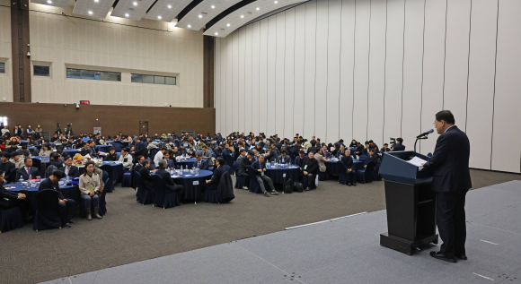 | ↑↑ 경주화백컨벤션센터 컨벤션홀에서 열린 2026년 상반기 물종합기술연찬회 개회식에서 전국 지자체와 물 산업 관계자들이 행사에 참석해 있다 / 사진제공=경주시 |