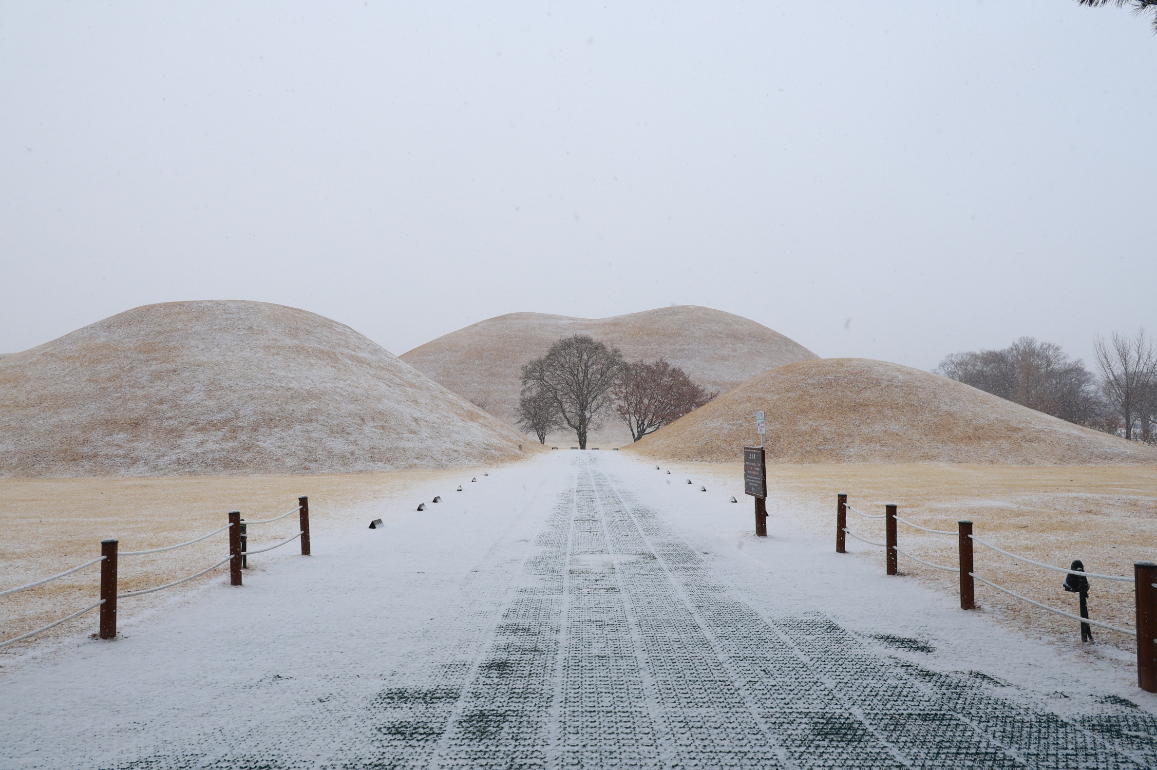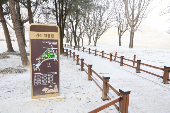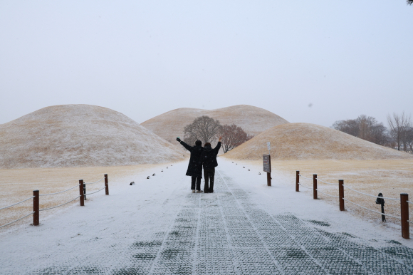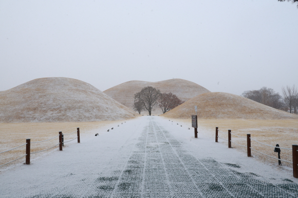 특히 눈이 내린 날의 대릉원은 완만한 고분의 곡선과 설경이 어우러져 평소와는 전혀 다른 분위기를 선사한다.