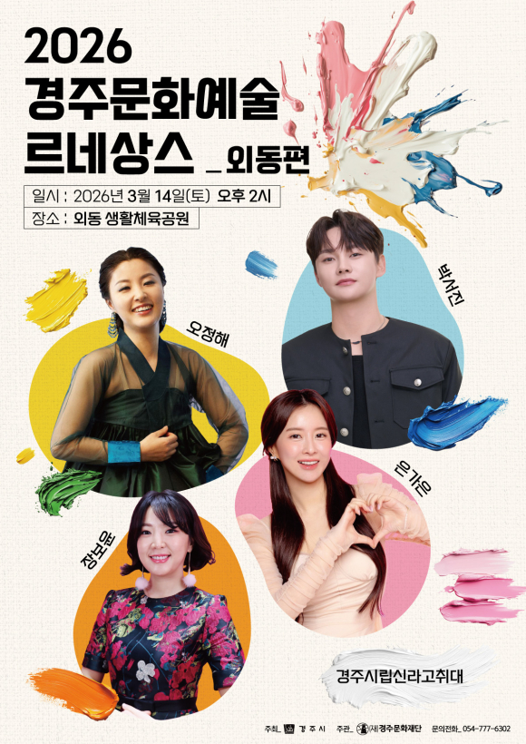 【경주/미디어인경북=김동철 기자】 경주시가 주최하고 (재)경주문화재단이 주관하는 ‘2026 경주 문화예술 르네상스’가 오는 3월, 읍면 외곽 소외 지역 주민들을 직접 찾아가 신명 나는 무대를 선보일 예정이다.