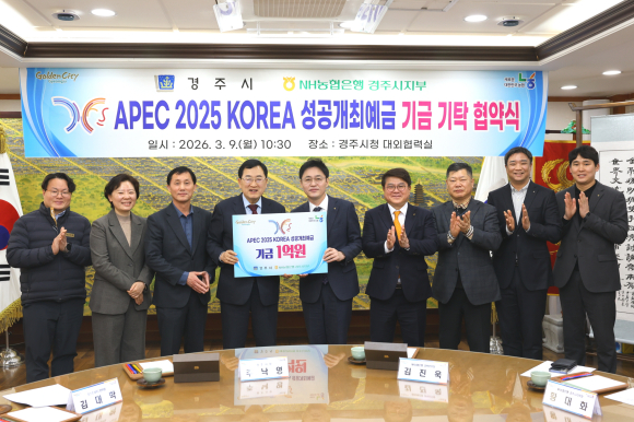 주낙영 경주시장은 “APEC 성공 개최를 위해 함께해 주신 시민들과 농협은행에 감사드린다”며 “이번 기탁금은 포스트 APEC 사업 추진 등 경주시의 미래 발전을 위해 의미 있게 활용하겠다”고 밝혔다.
