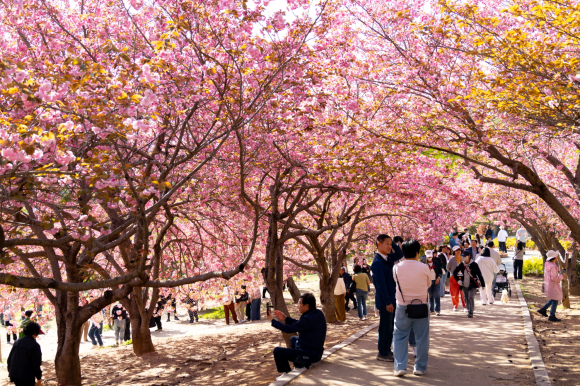 벚꽃 시즌이 지나가는 시점에도 불구하고, 꽃의 종류가 바뀌며 또 다른 볼거리를 제공하면서 봄 관광 열기가 이어지고 있는 모습이다.