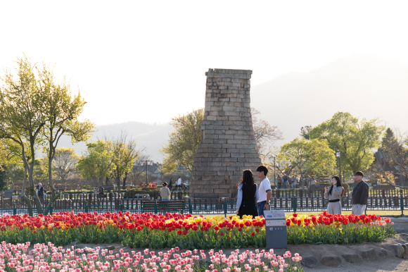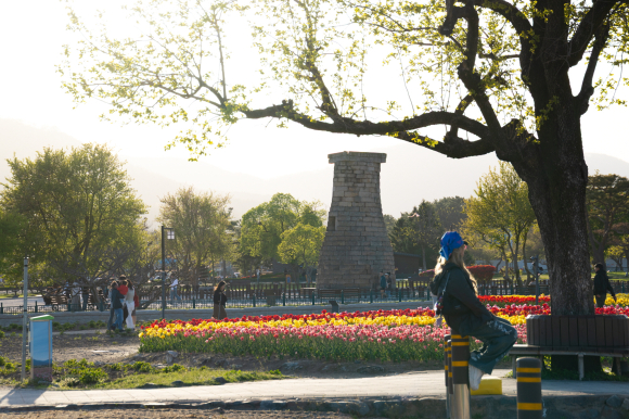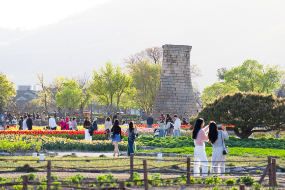 동부사적지 첨성대 주변 역시 형형색색의 튤립이 만개하며 또 다른 봄 명소로 자리 잡았다.