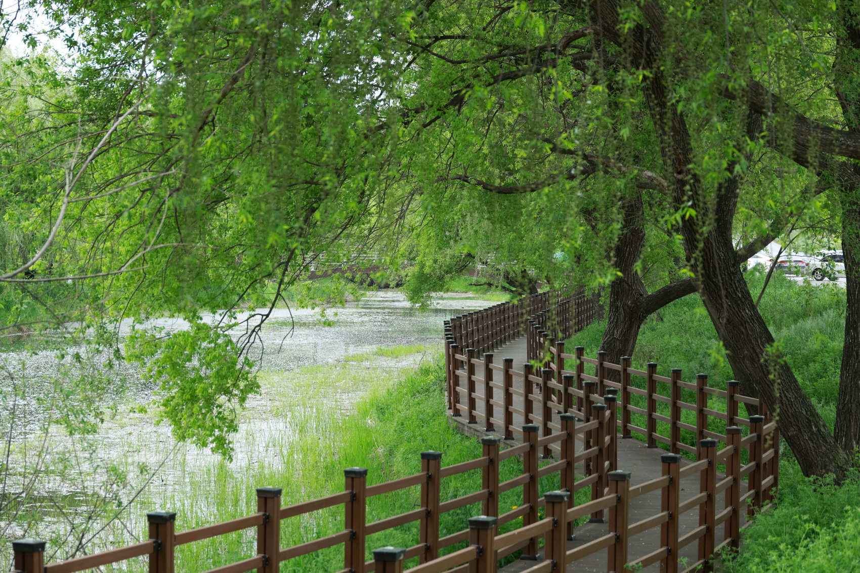 물가를 따라 이어진 나무 데크길은 부드럽게 굽이치며 이어지고, 길 위로 늘어진 버드나무 가지는 마치 자연이 만든 아치형 터널처럼 방문객을 맞이한다.